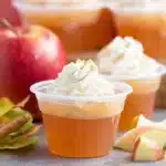 One of the best things about these Apple Pie Jello Shots is that they can be made in advance. Once the jello has set, simply cover the shot glasses and refrigerate them for up to 5 days. When you’re ready to serve, simply top them with the whipped cream and you’re good to go.