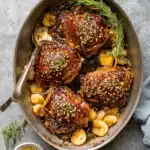 - Garnish with fresh thyme or parsley – the green herbs add a beautiful contrast to the rich, dark glaze.
