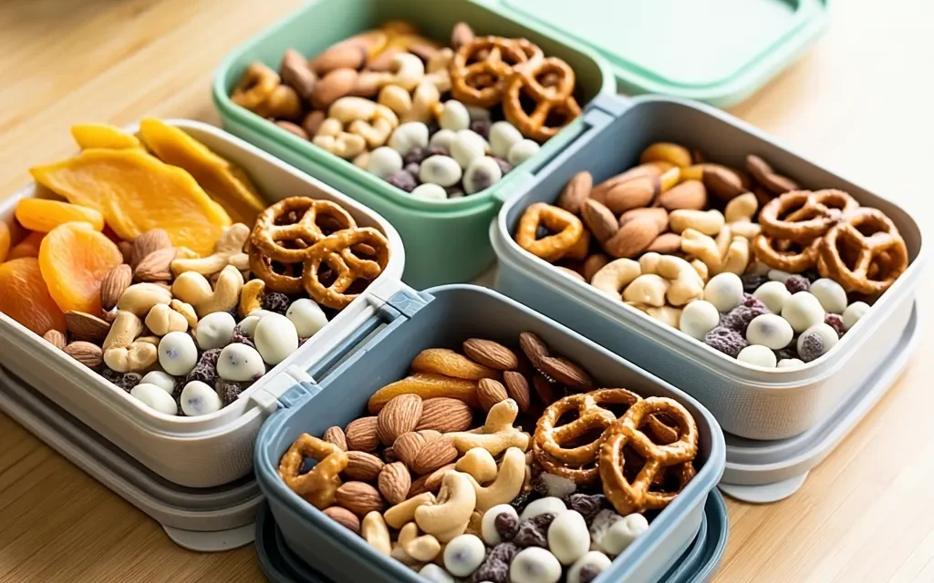 3. Divide the snack mix into individual portion-sized containers or sealable bags.