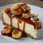 Indulge in a divine caramelized banana cheesecake with a rich rum glaze for a quick and easy dessert you’ll love.
