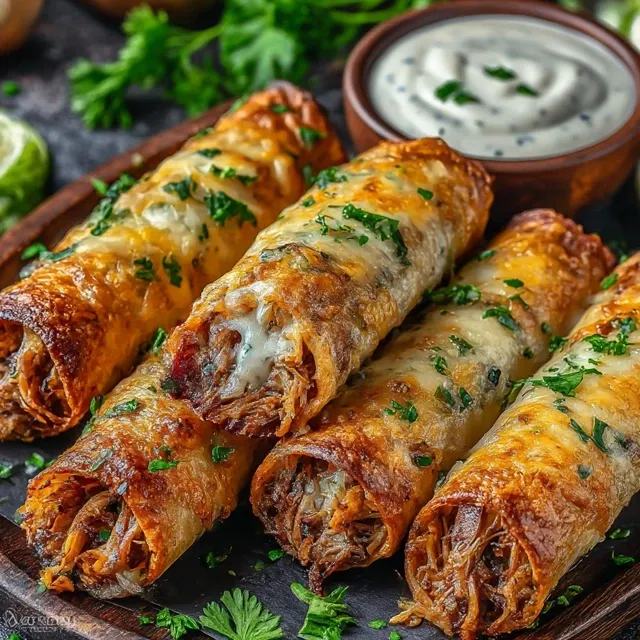 The Secret Behind Perfect Cheesy Pulled Pork Taquitos with Chipotle Ranch Dressing