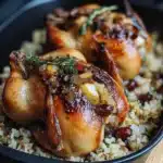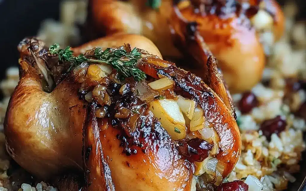 If you’re following a low-carb or keto diet, you can swap the rice for riced cauliflower and use a sugar-free sweetener in place of the cranberries. For a vegan or vegetarian version, substitute the Cornish hens with firm tofu or mushroom caps, and use plant-based butter or olive oil in the stuffing.