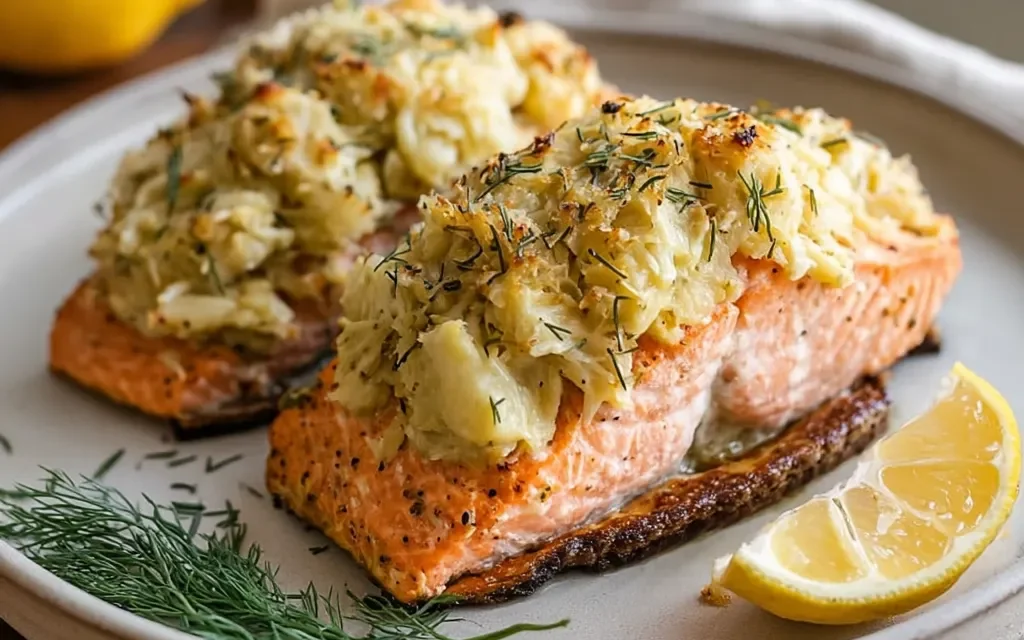 For make-ahead convenience, you can prepare the crab meat filling up to 2 days in advance and store it in an airtight container in the refrigerator. When ready to assemble and bake, simply stuff the salmon fillets and follow the remaining instructions.