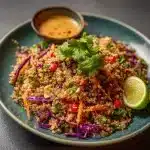 The secret to this Crunchy Thai Quinoa Salad with Peanut Dressing is in the perfect balance of flavors and textures. The quinoa provides a nutty, satisfying base, while the crunchy veggies like cabbage, carrots, and bell peppers add a delightful crunch. But the real star of the show is the creamy, flavorful peanut dressing. It’s made with a blend of peanut butter, lime juice, soy sauce, and a touch of honey, and it really ties all the flavors together.