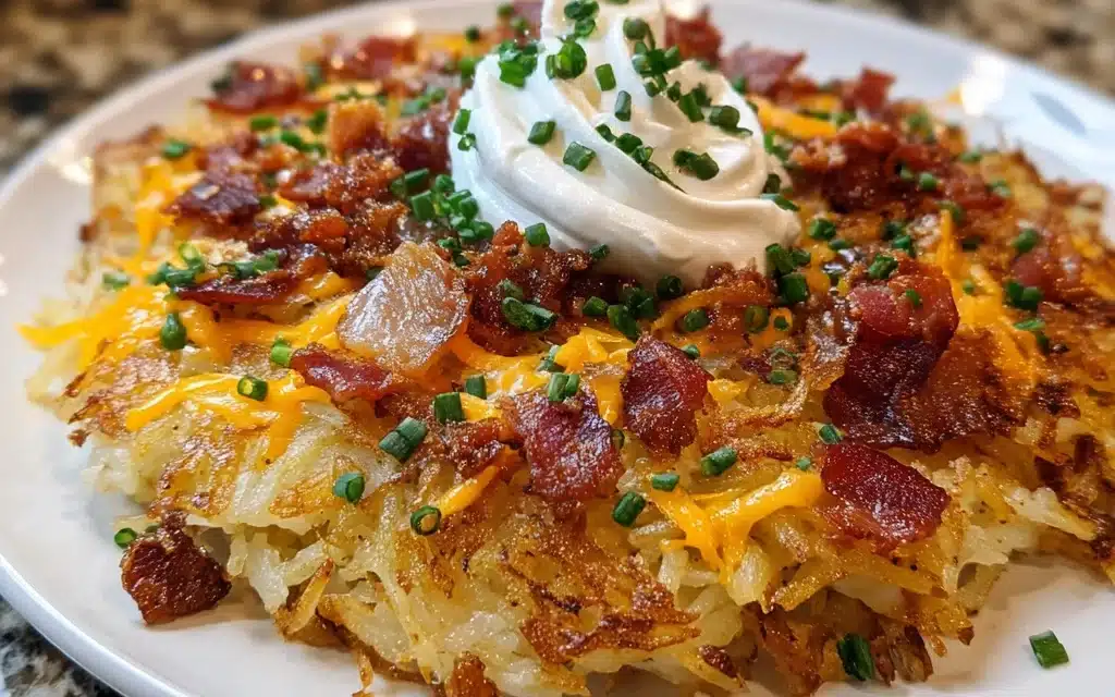 Indulge in the ultimate breakfast treat with these Fully Loaded Hashbrowns! Crispy, golden hashbrowns are topped with melted cheese, crispy bacon, and green onions for a flavor-packed and satisfying dish.