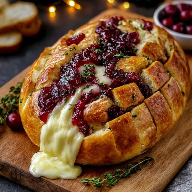 Indulge in the irresistible combination of buttery, garlic-infused sourdough bread, creamy brie cheese, and tangy cranberries in this comforting and professional-quality recipe.