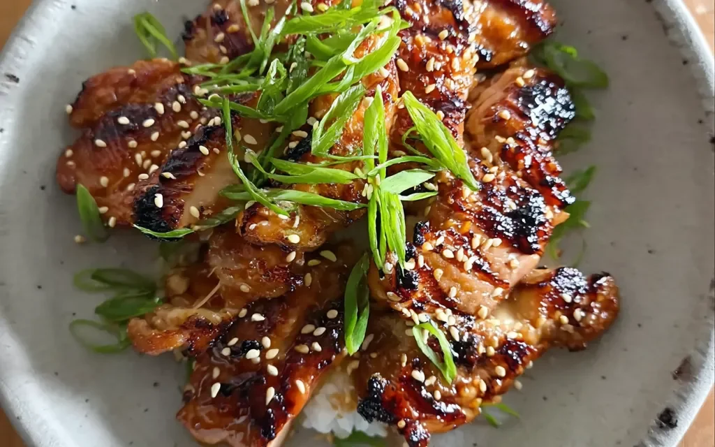 5. Slice the chicken and serve it over rice, garnished with the sliced green onions and sesame seeds.