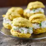 Indulge in the perfect balance of sweet and savory with these Jalapeno Cornbread Whoopie Pies filled with a creamy bacon and goat cheese mixture. These irresistible bites are the ultimate party appetizer or game day snack.