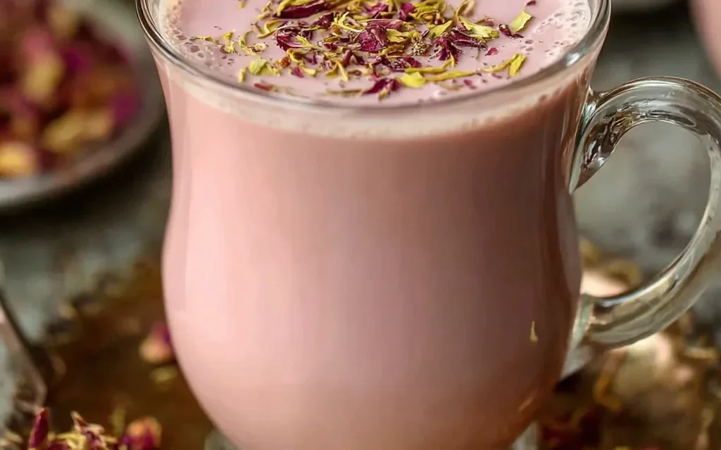 6. Enjoy the Kashmiri Pink Chai (Noon Tea) hot, garnished with additional rose petals if desired.