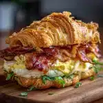 Sitting in my favorite cozy breakfast spot, the aroma of freshly brewed coffee and the sizzle of bacon wafted through the air, instantly transporting me back to that morning I discovered the Maple Bacon Breakfast Croissant Sandwich. It was one of those days where I was craving something truly indulgent yet comforting – and this sandwich was about to become my new go-to.