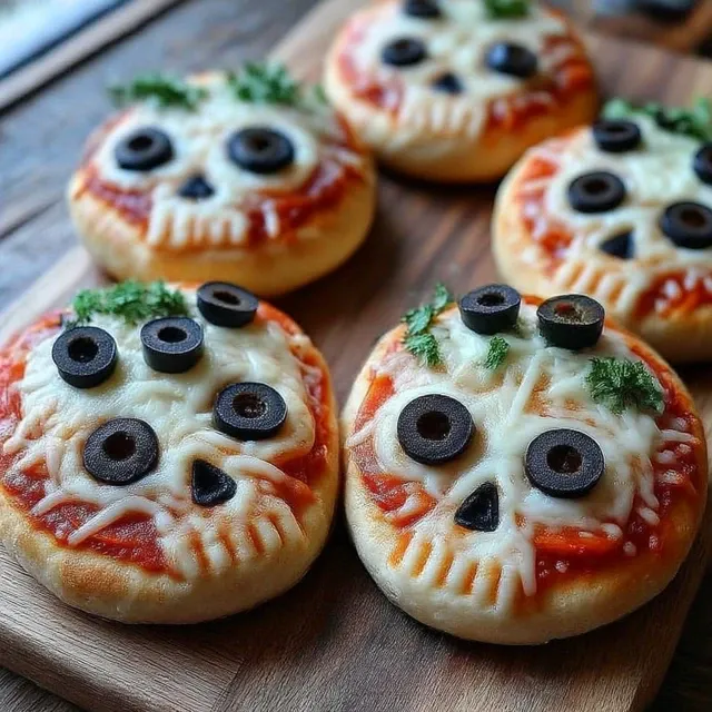 These Mini Skull Pizzas Halloween are a fun and spooky twist on classic pizza. Bake up a batch of these adorable skull-shaped mini pizzas for your Halloween party or family dinner, and watch them disappear in a flash!