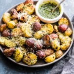 Crispy, golden Parmesan Pesto Roasted Potatoes are a flavor-packed side dish that’s easy to make and sure to impress. Tossed in a fragrant garlic-herb pesto and baked to perfection, these potatoes are irresistibly delicious.