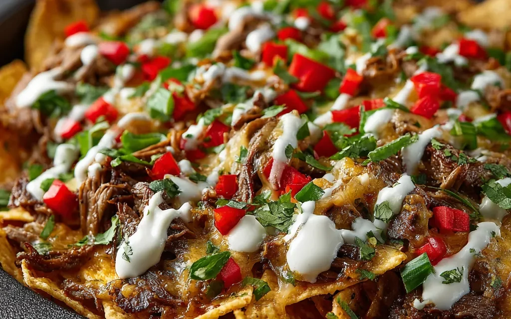 A: Yes, you can prepare components of this dish in advance to make assembly a breeze on game day. The seared beef and sautéed vegetables can be stored separately in the refrigerator for up to 3 days. When ready to serve, simply assemble the nachos and bake as directed. The baked nachos can also be reheated in the oven for 5-7 minutes at 350°F.
