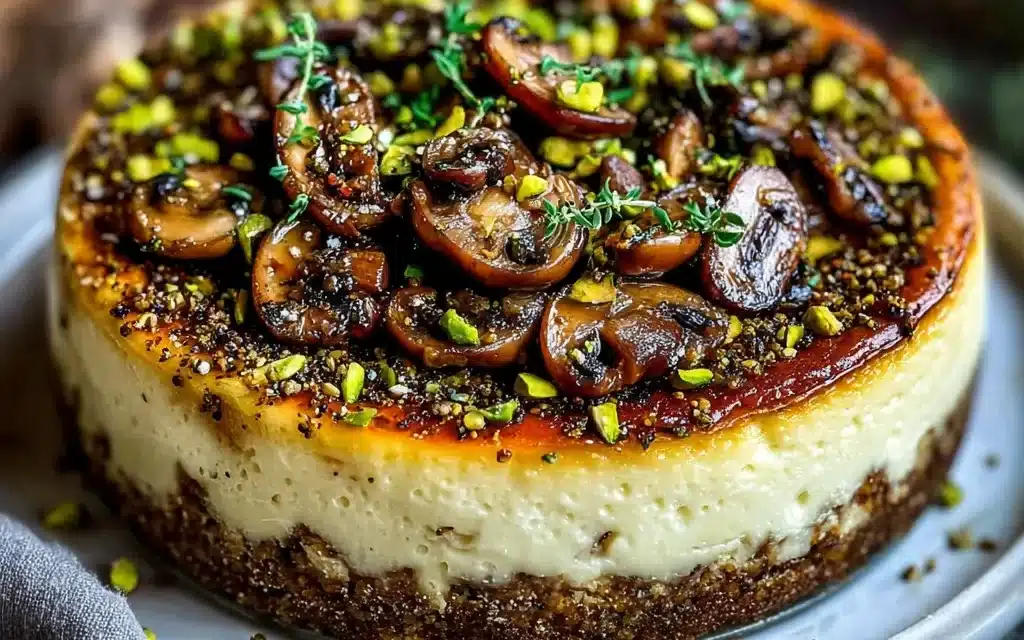 The Secret Behind Perfect Pistachio and Mushroom Cheesecake with Feta & Parmesan Crust