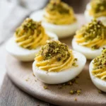 For a more substantial spread, consider serving the deviled eggs alongside a selection of crudités, crackers, or small bread bites. The nutty, savory flavors of the pistachios also complement charcuterie boards, cheese platters, and other finger foods perfectly.