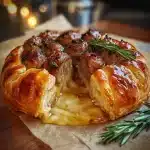 As soon as I laid eyes on that warm, gooey wheel of Brie, studded with savory sausage and wrapped in a golden puff pastry crust, I knew I had to have a slice. The moment I sank my teeth into it, the combination of creamy, melted cheese and the hearty, flavorful sausage had my taste buds doing a happy dance. It was the perfect balance of richness and comfort, and I couldn’t stop going back for more.