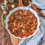 Prep time for this recipe is just 15 minutes, and the total cook time is 50 minutes, for a total time of 65 minutes. You’ll need a 9×13-inch baking dish, a sharp knife, a mandoline slicer (if you have one), and a mixing bowl.