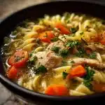 Enjoy a comforting bowl of Slow Cooker Chicken Noodle Soup, a Grandma-approved recipe that’s ready in just 30 minutes. Tender chicken, fresh vegetables, and hearty noodles come together in this classic, soul-soothing dish.