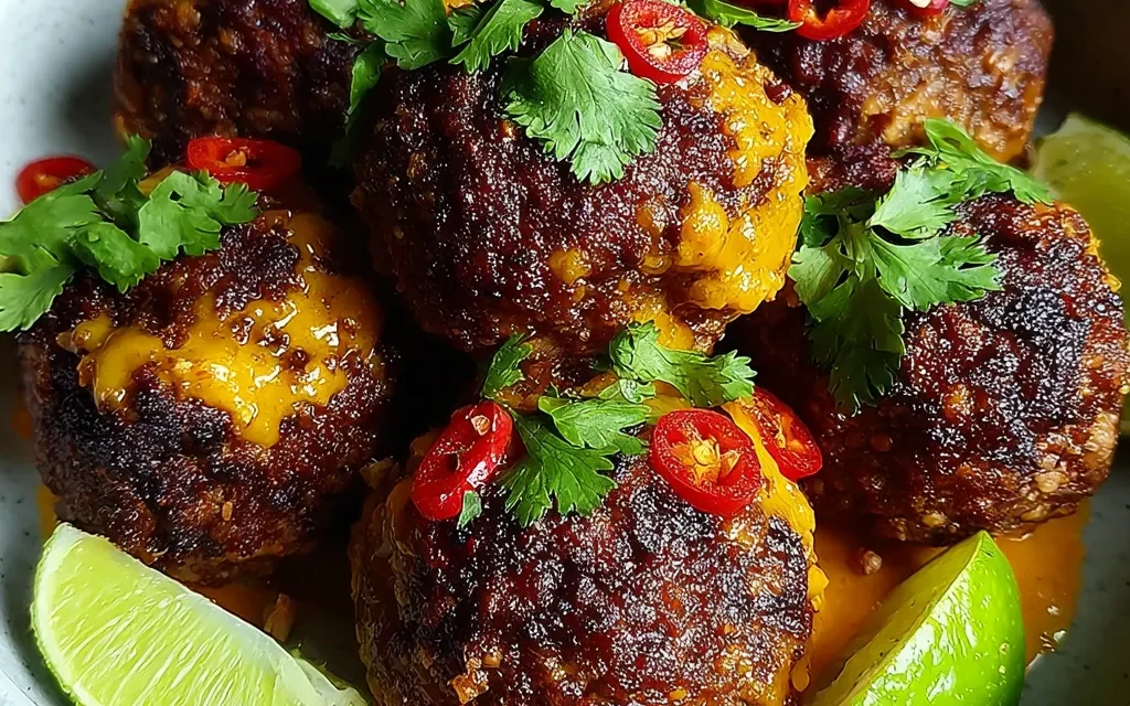6- Finally, sprinkle the fresh chopped cilantro and drizzle the lime juice over the Spicy Mexican Donkey Balls, giving them a final flavor boost. Serve hot and enjoy!