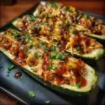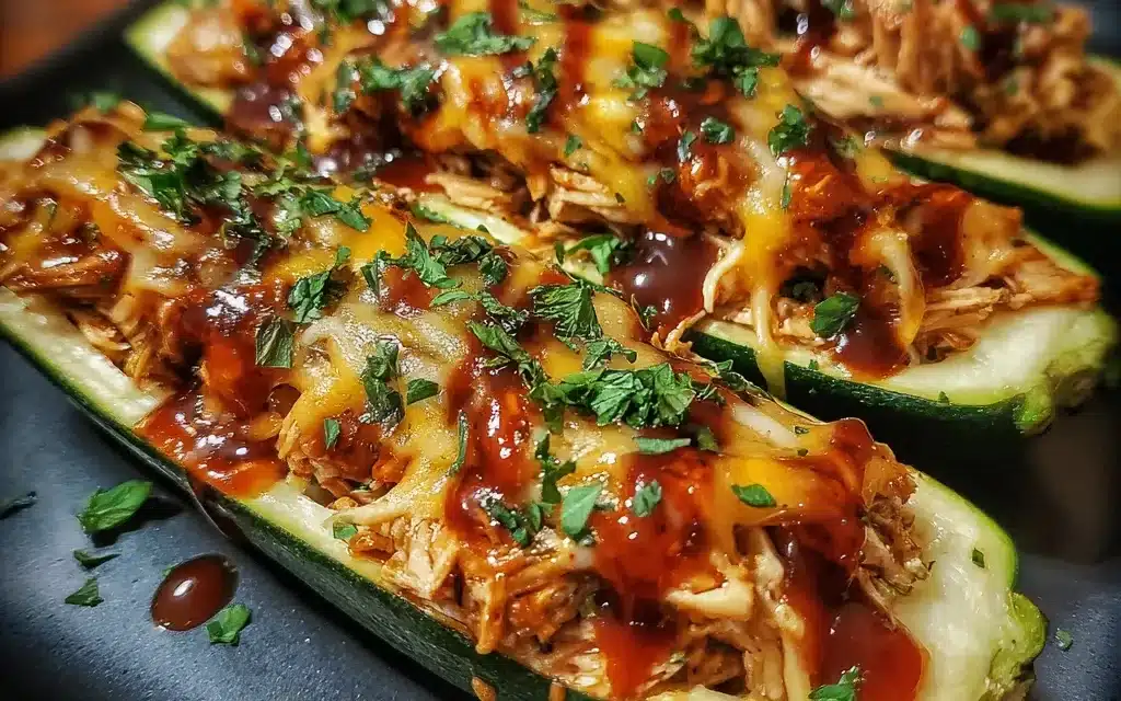 Tender, juicy chicken smothered in a sticky, sweet BBQ sauce, nestled in fresh zucchini boats – this dish is a flavor explosion that the whole family will love.