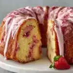 As I gathered the ingredients and got to work, the aroma of the cake baking filled my kitchen. I couldn’t wait to take that first bite and see if it lived up to my expectations. When the timer finally dinged and I pulled the cake from the oven, it was golden brown and absolutely irresistible. I let it cool, then drizzled on a tangy glaze and added a few extra strawberry slices on top.