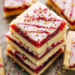 These Strawberry Pop Tart Cookie Bars are the perfect treat for any occasion, from cozy movie nights to festive celebrations. With their irresistible combination of buttery shortbread, sweet strawberry filling, and a pop of nostalgia, it’s no wonder they’ve become a family favorite. Give this recipe a try, and get ready to have a new go-to dessert that’s sure to impress your friends and loved ones. Don’t forget to share your creations and let me know how they turned out!