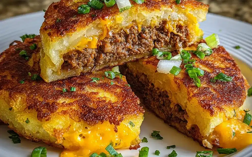 Stuffed Potato Pancakes with Cheesy Beef Filling
