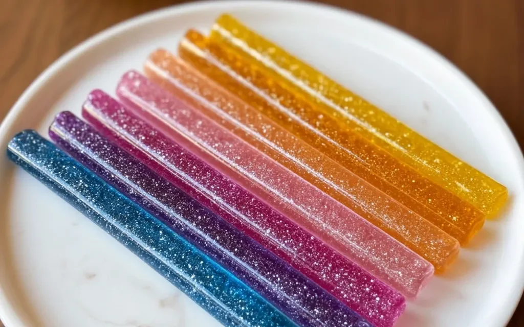 For a more intense tequila flavor, you can increase the amount of tequila used. Experiment with different color combinations to create a variety of vibrant, shimmering gummy wands.