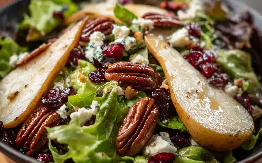 - Pear and Walnut Thanksgiving Green Salad: Replace the pomegranate with sliced, ripe pears and use toasted walnuts instead of pecans.