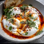 Discover the authentic flavors of Turkish Eggs (Cilbir) – a traditional breakfast dish that features perfectly poached eggs nestled in a bed of creamy, tangy yogurt, topped with fragrant spices and fresh herbs. This restaurant-quality recipe is ready in just 15 minutes, making it a delightful and easy-to-prepare morning meal.