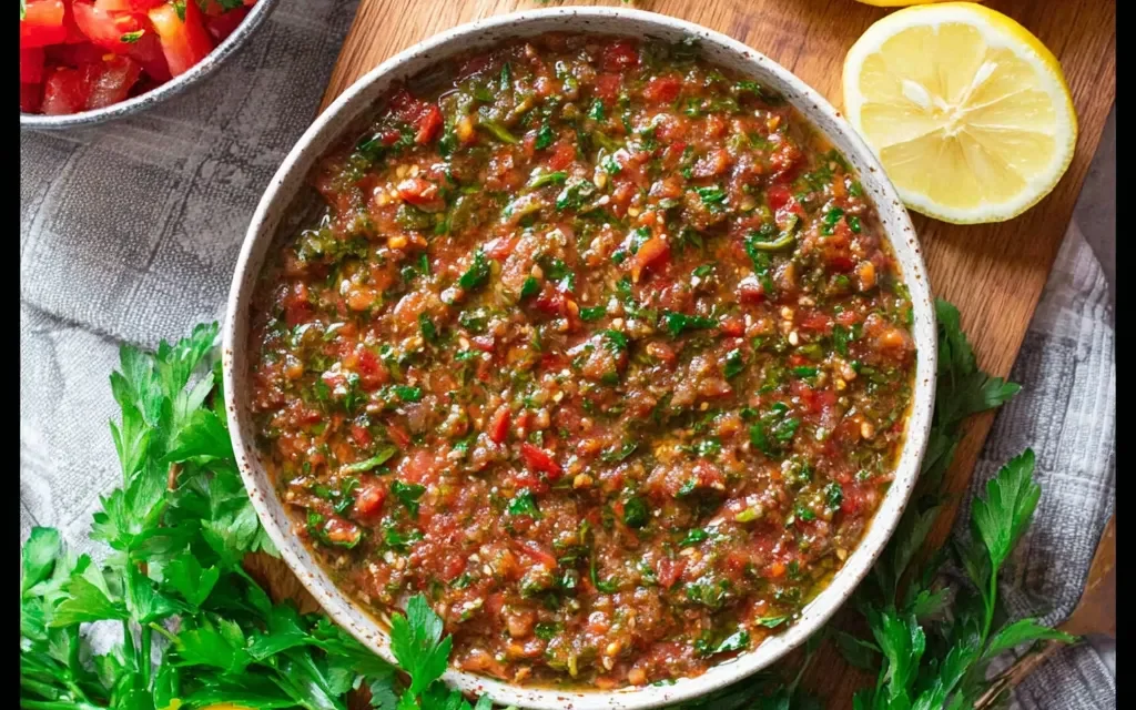 Discover the authentic taste of Turkish Ezme, a vibrant and flavorful appetizer bursting with fresh ingredients. This quick and easy-to-make dish is perfect for sharing with family and friends, offering a delightful blend of tomatoes, onions, parsley, and a touch of spice.