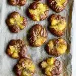 A: Yes! You can boil the potatoes a day in advance and store them in the fridge until you’re ready to smash and roast them. You can also prep the smashed, uncooked potatoes up to 2 days ahead and refrigerate them until baking.