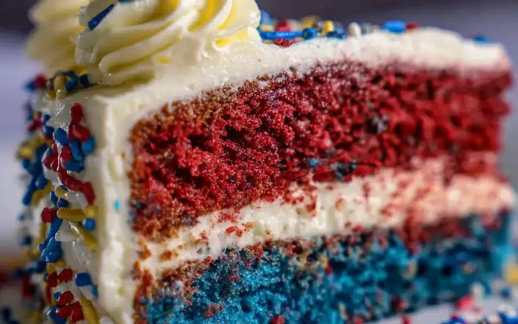 6. – Allow the cake to cool completely, then top with red, white, and blue sprinkles if desired.