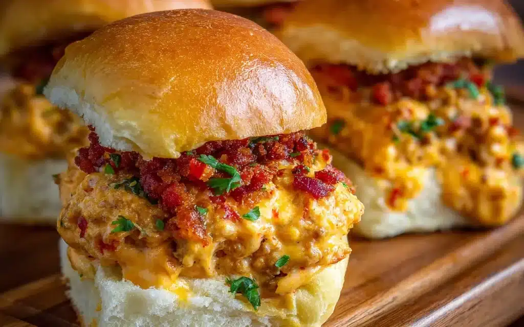These Viral Pimento Cheese Stuffed Sliders are a delicious and easy-to-make party favorite. Packed with a creamy pimento cheese filling and topped with a savory slider patty, they’re the perfect bite-sized indulgence.