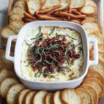 Warm Goat Cheese Dip with Sun-Dried Tomatoes is a truly delightful and versatile appetizer that’s sure to impress your guests. With its creamy texture, tangy flavor, and sweet, savory sun-dried tomatoes, it’s the perfect balance of indulgence and freshness. Give this recipe a try, and I guarantee it will become a new staple in your culinary repertoire. Don’t forget to share your thoughts and photos with me in the comments – I’d love to hear how your Warm Goat Cheese Dip with Sun-Dried Tomatoes turns out!